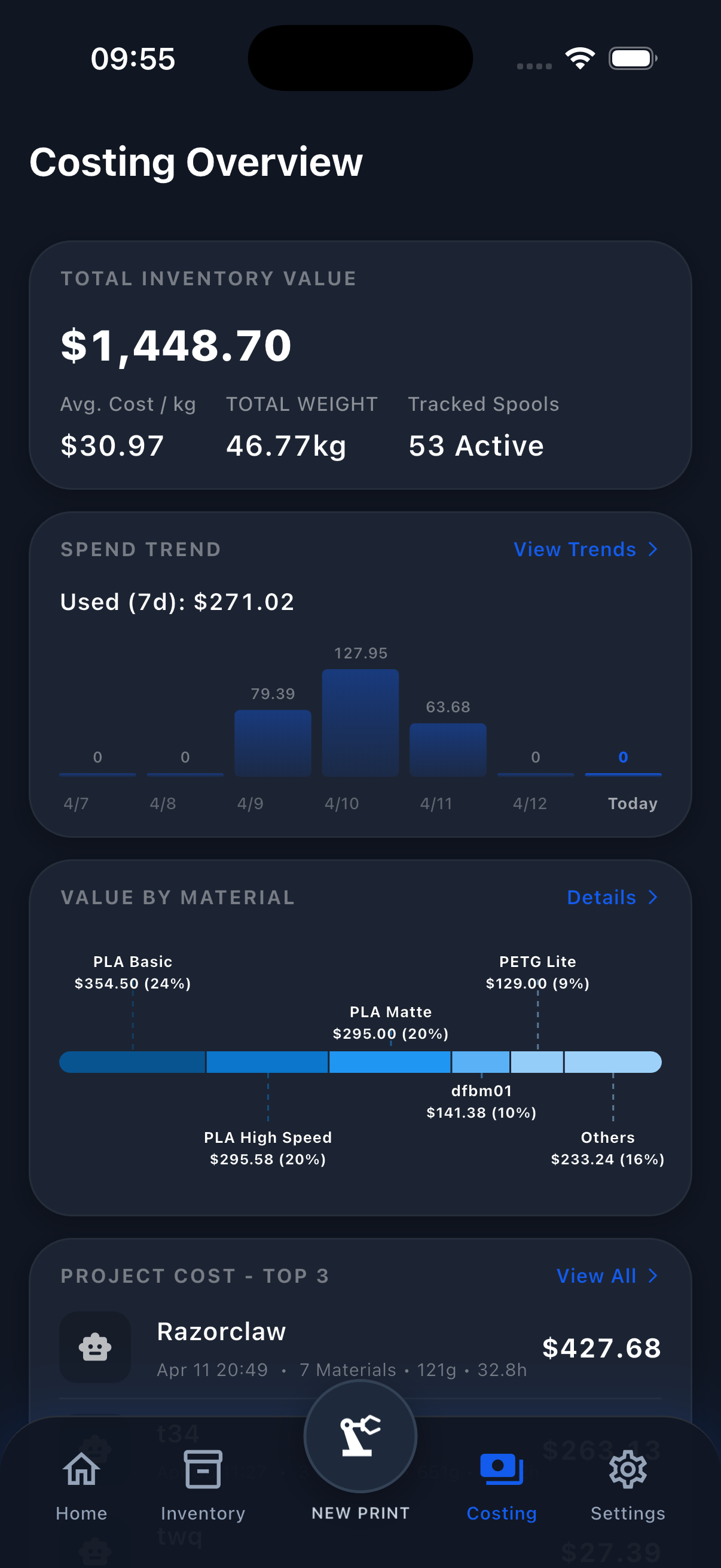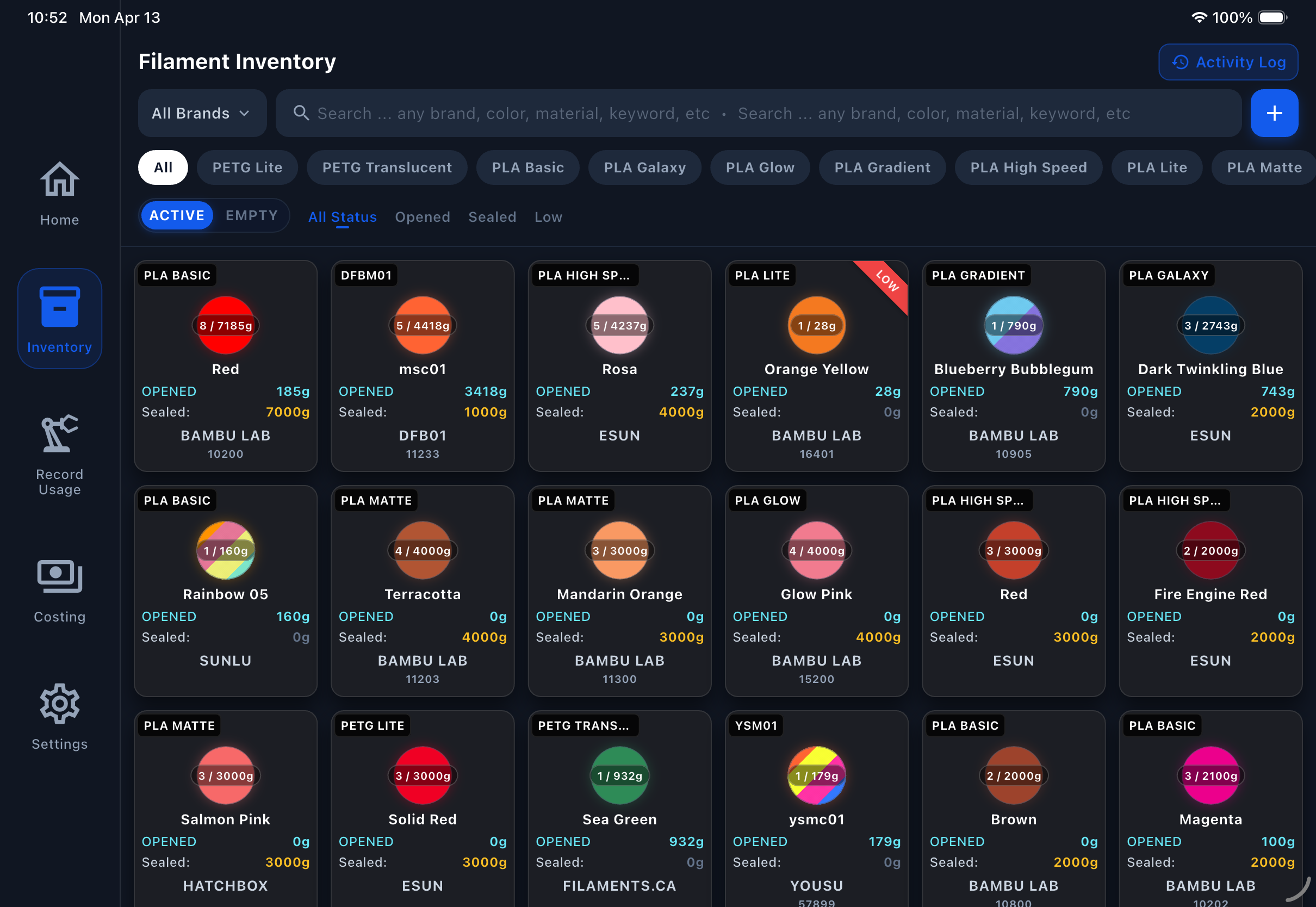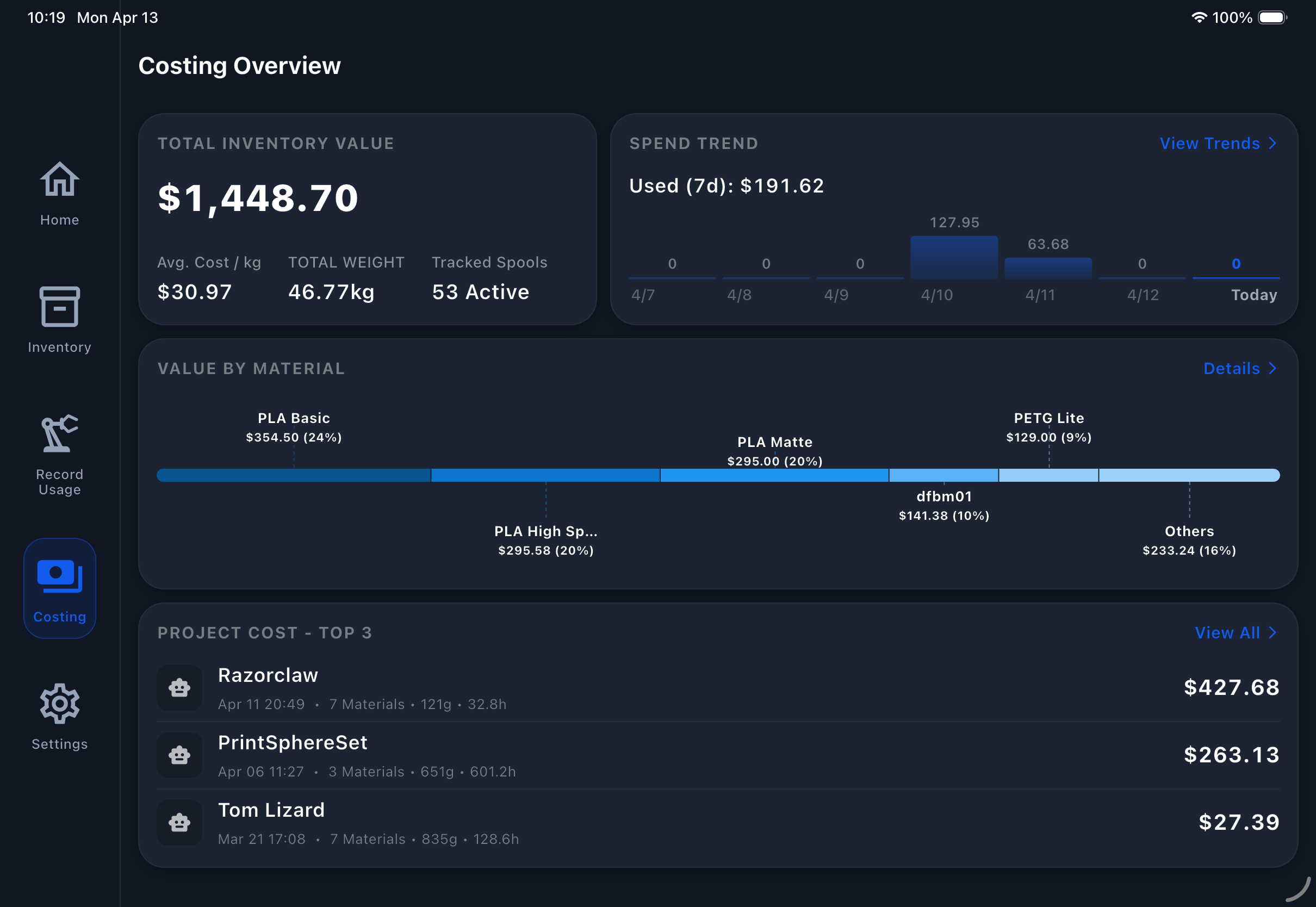Ditch the manual logs. Track accurate usage, costs, and full material history with a unified graphical interface on any device.